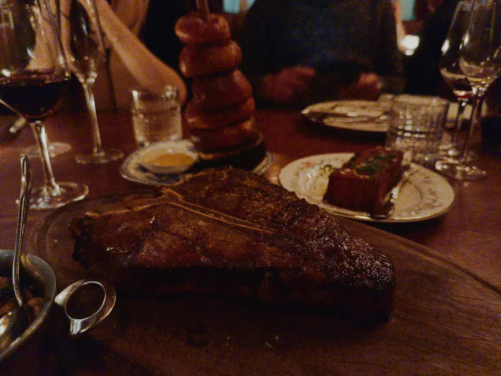 John Gruber @gruber.foo · 7h Philadelphia, Pennsylvania, United States 5 1 Apple iPhone 17 Pro iPhone 17 Pro back camera 6.765mm f/1.78 24mm · f/1.8 · 1/15s · ISO 5000 Porterhouse in the front, onion rings in the back.